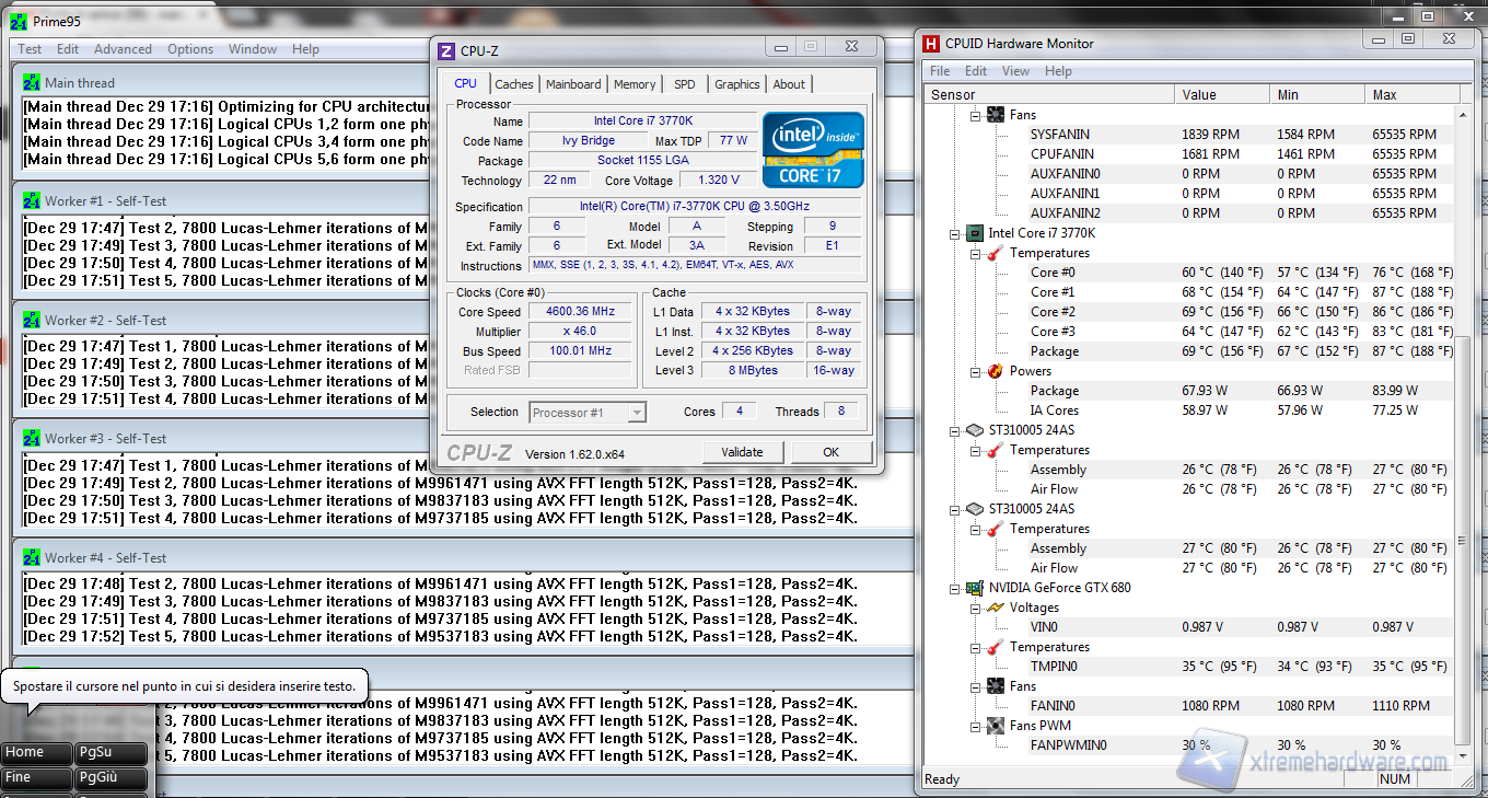 Questo effetto non è dovuto alle scarse prestazioni del dissipatore ma piuttosto all’unione tra DIE del core e la placchetta metallica sovrastante (HIS). Con la famiglia Ivy Bridge, infatti, Intel non ha saldato le due parti come faceva in precedenza sui processori Sandy Bridge (e non solo) ma le ha unite mediante una pasta termica dalle caratteristiche termo conduttive nettamente inferiori. Da osservare come ad un certo punto HW Monitor abbia rilevato regimi massimi di rotazione delle ventole in modo errato, il regime massimo osservato per quanto riguarda il dissipatore è stato di 2500rpm, probabilmente si tratta anche del limite massimo di giri che può generare la ventola.